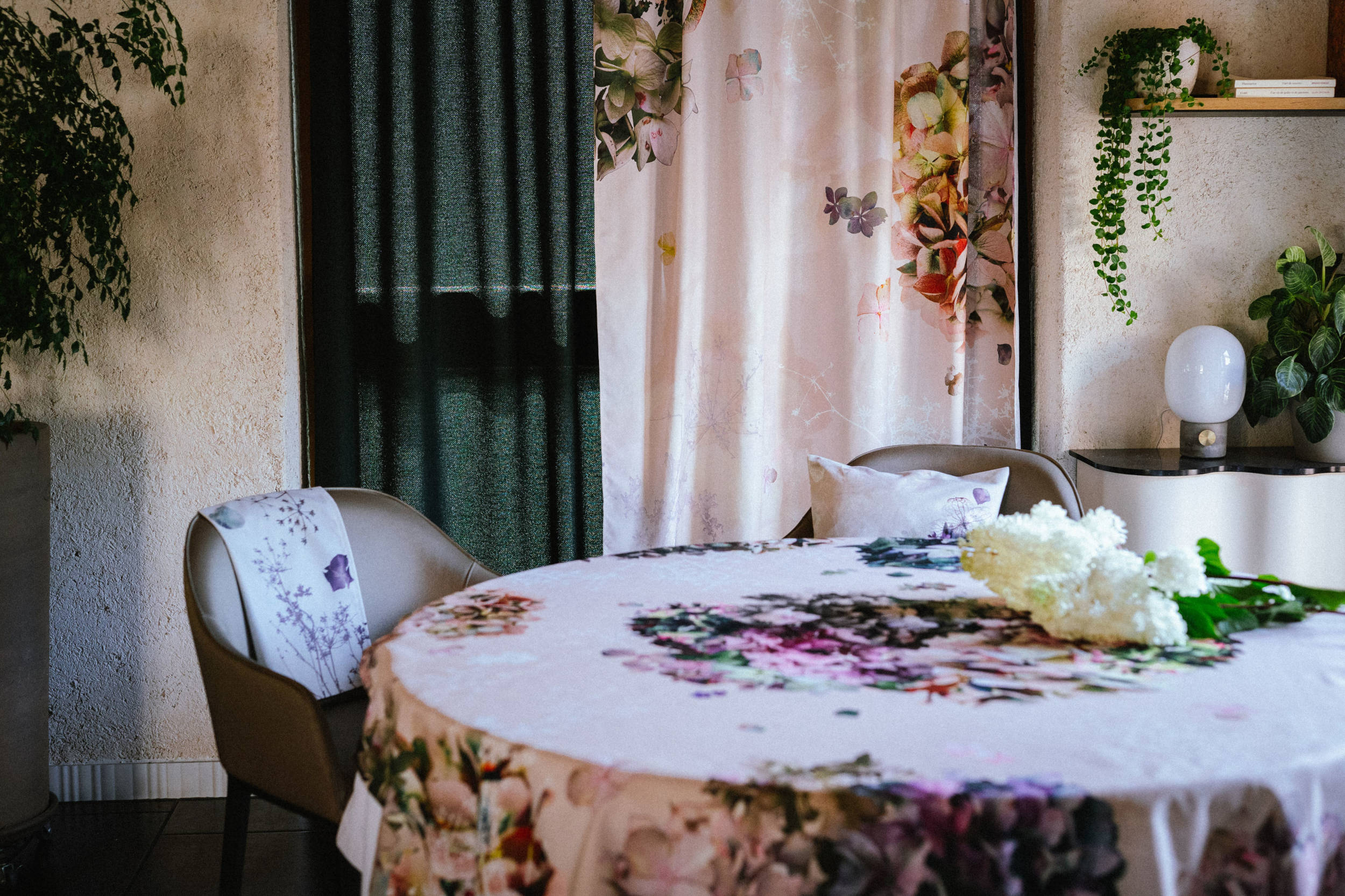 De balades en cueillettes photographiques, les fleurs se posent sur le textile, capturant l’instant, la lumière, la saison. Hortensias intemporels, pivoines éclatantes, feuillages tropicaux ou délicates herbacées, chaque collection a son empreinte, son souffle, son univers.