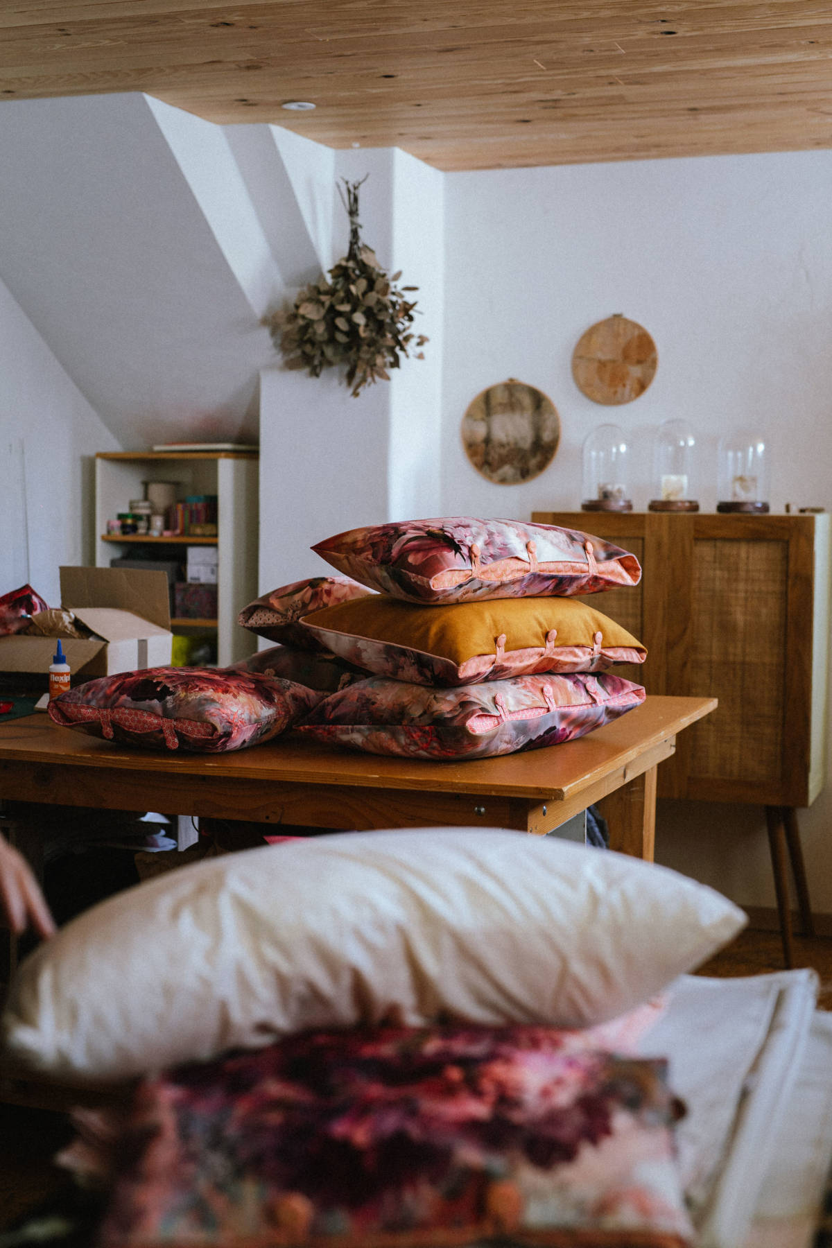 La boutique en ligne est une prolongation de l’atelier, un espace où choisir, à votre rythme, une étoffe qui résonne, un coussin qui invite à la douceur, un linge de table qui fait écho à vos instants partagés.