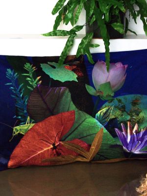 Je conçois des motifs placés et des tissus d’ameublement, réalisés à partir de photos de végétaux, de matières organiques et minérales, de feutre, intégrant des motifs graphiques ainsi que des captures d’empreintes végétales. La grande majorité de la confection est réalisée par mes soins au sein de mon atelier situé en Alsace, dans un village du Bas-Rhin.