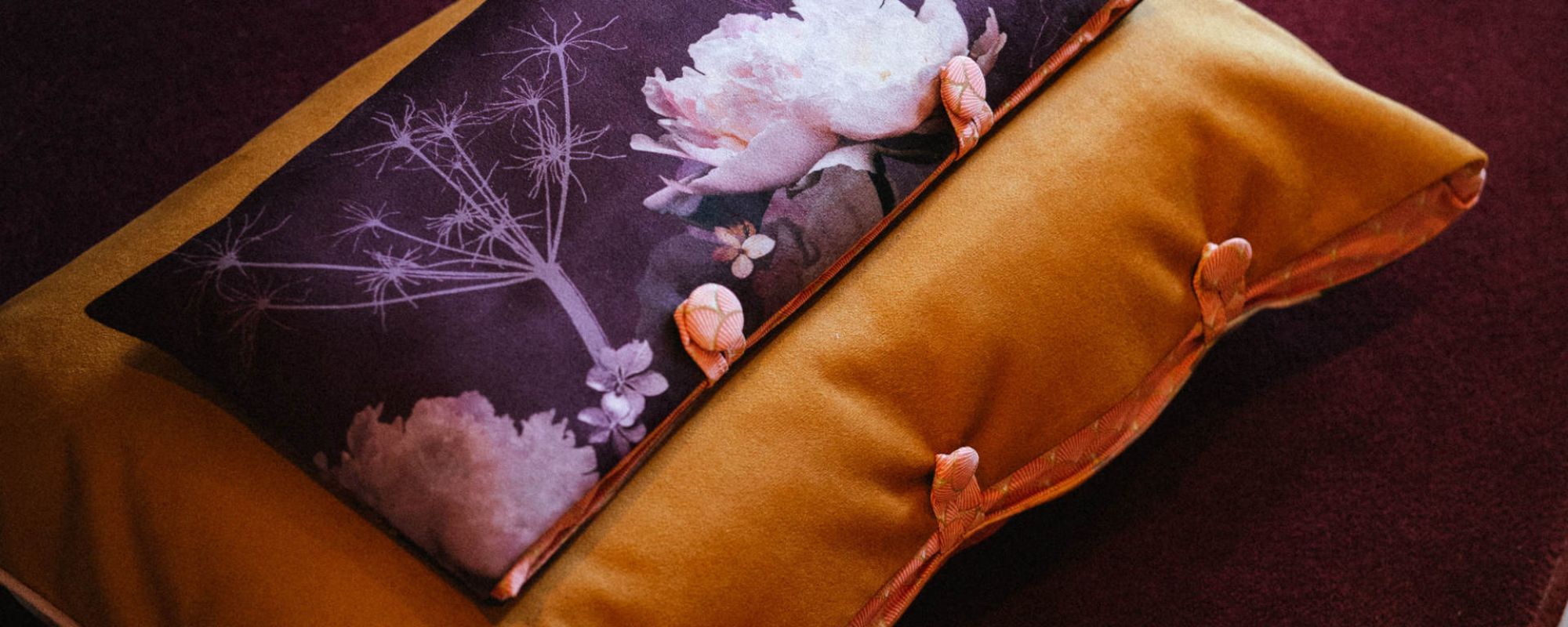 Elle est déclinée sur des coussins & housses, courtepointe molletonnée et objets textiles qui appellent au cocooning. La dominante prune de cette collection est sublimée par la douceur du velours, que vous pouvez également retrouver en tissu d’ameublement vendu au mètre.Au cœur de l’hiver, bien qu’aimant cette période de retour à soi, j’ai besoin de me souvenir des jardins, de l’énergie des fleurs, de l’inépuisable créativité du monde végétal. J’ai créé cette collection comme un jardin foisonnant, baroque et chaleureux, un jardin imaginé comme un cocon précieux : Mon Jardin d’Hiver.